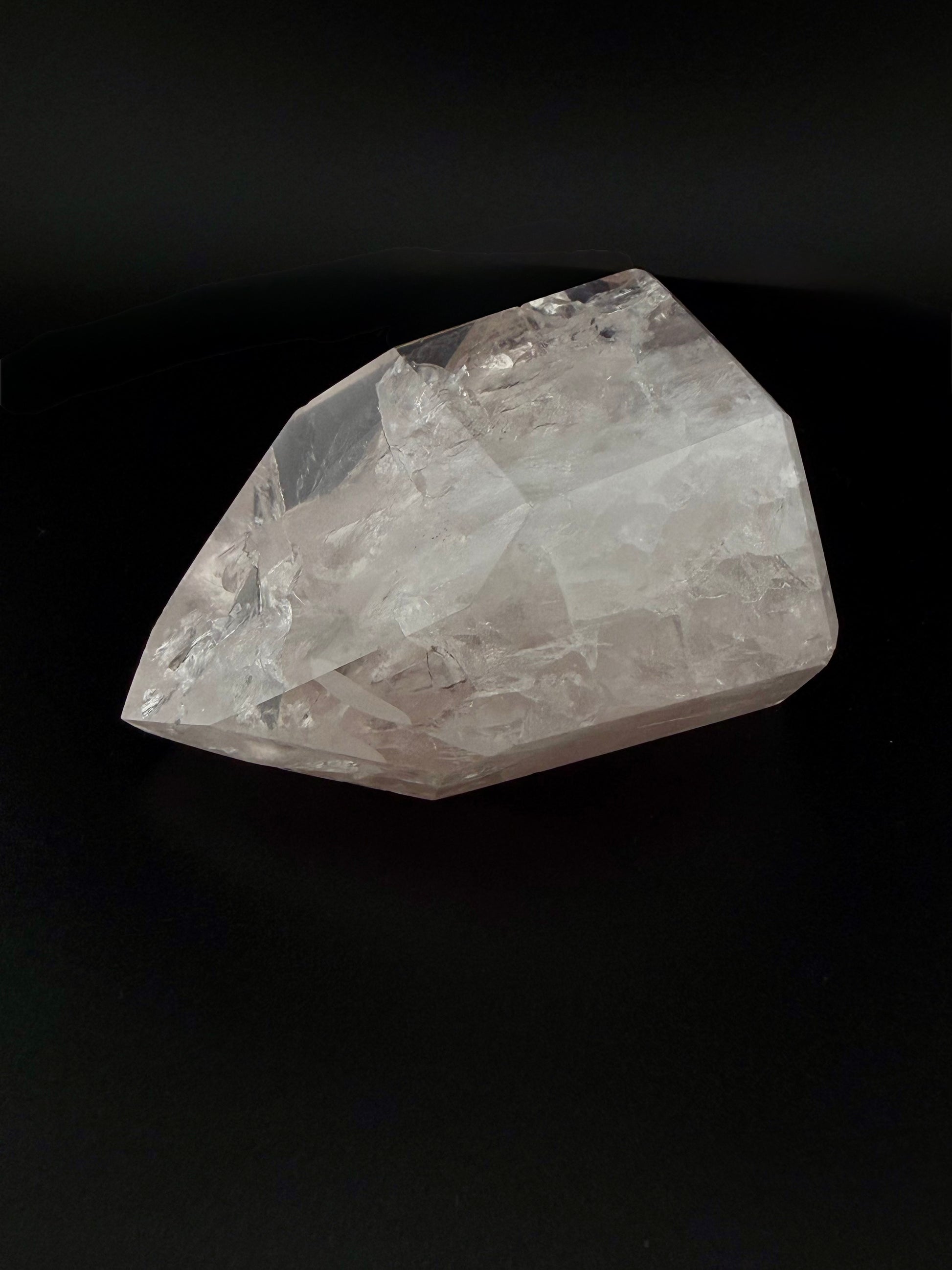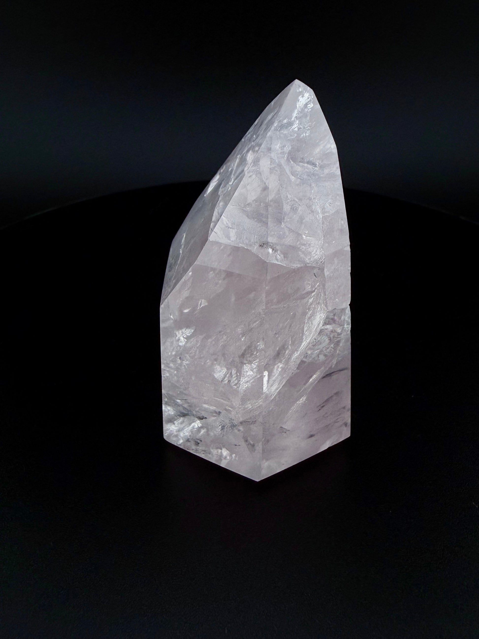 高い透明度と柔らかく明るいピンクの輝きを誇るこのローズクォーツ ジェネレーター ポイントは、見た目が美しいだけでなく、強力な治癒エネルギーを持っていると信じられています。
