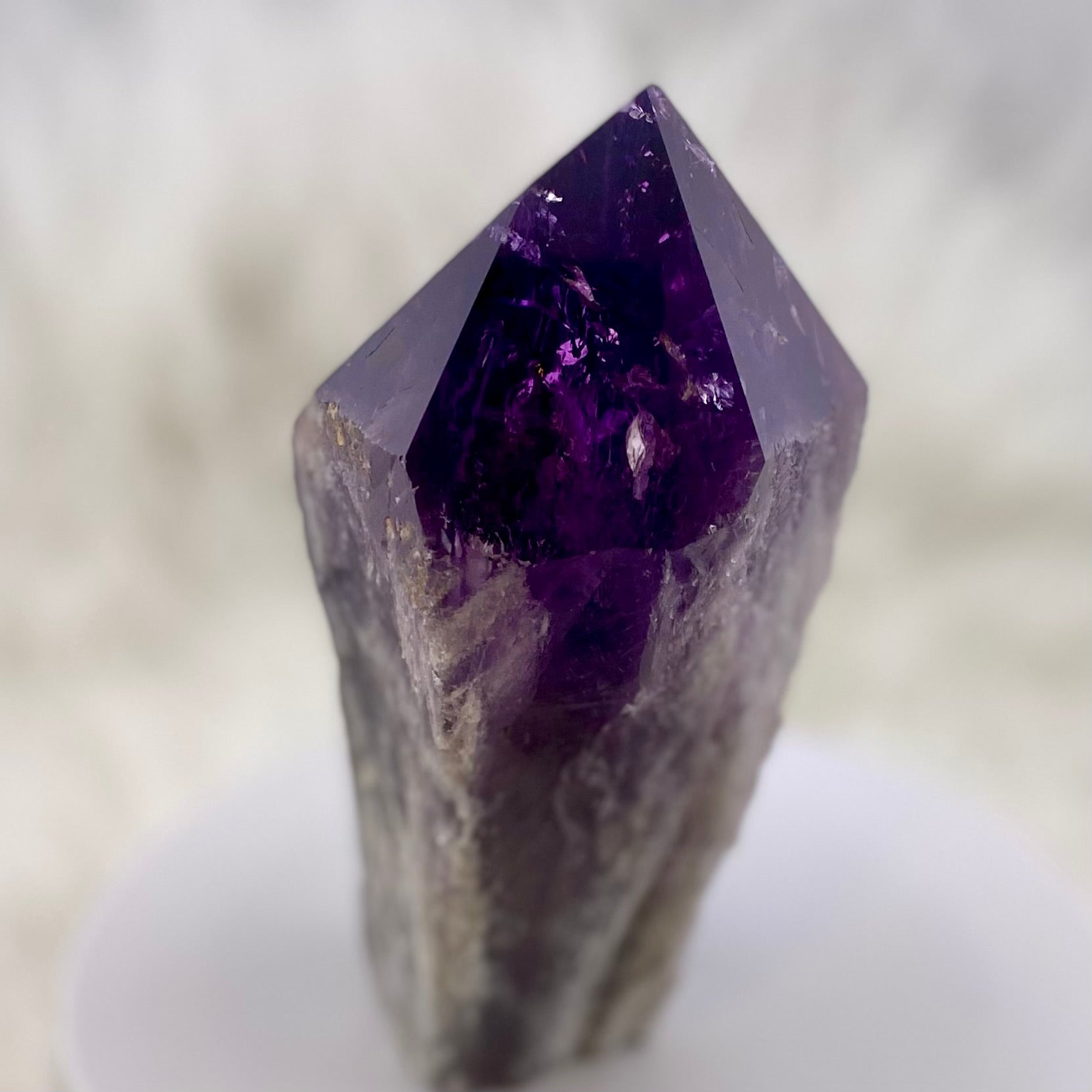 深遠な紫色と、力強い結晶の先端(ポイント)を持つ、見事なアメジストポイントです。