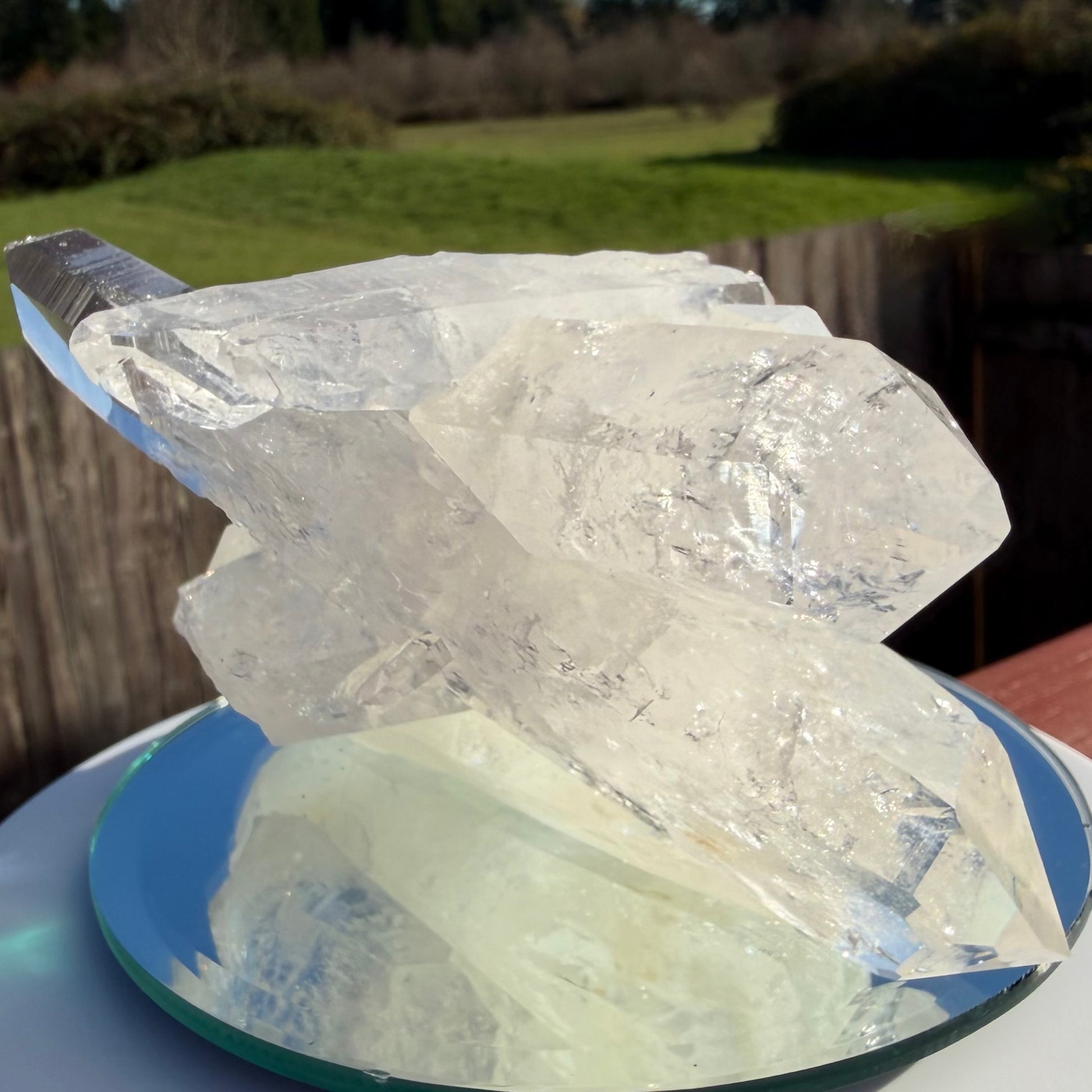 This is not a silent stone; it is a roaring engine of high-vibrational energy. Priced for the serious collector, this exceptional Lemurian Seed Cluster is a geological rarity. It features a complex, multi-point formation where pristine, high-clarity crystals dynamically intersect, creating a mesmerizing "web of light."